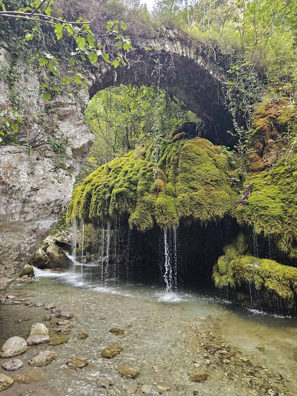 Proseguendo verso Casaletto Spartano, si incontra il rio Bussentino con le celebri Cascate dei Capelli di Venere, una delle meraviglie naturali più iconiche del Cilento. Qui l’acqua cristallina scivola tra muschi e felci, formando un paesaggio fiabesco che trasmette pace e freschezza. Fermarsi a osservare queste cascate, con i loro giochi d’acqua e di luce, è uno dei momenti più belli della tappa.