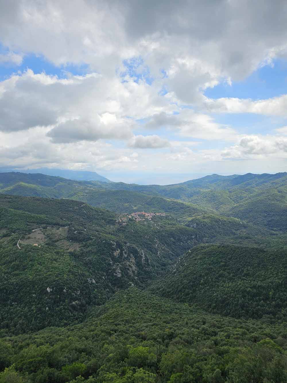 Lasciato il borgo di Caselle, il sentiero si inerpica tra colline coperte di uliveti e boschi rigogliosi, dove il silenzio è rotto solo dal fruscio del vento e dal richiamo della fauna selvatica. Salendo verso quota, si aprono una serie di scorci panoramici che abbracciano vallate e montagne lontane, con momenti di contemplazione pura. Questo tratto è un viaggio lento, dove la fatica si stempera nella bellezza circostante e porta i camminatori a fermarsi e riconnettersi con la natura più selvaggia.